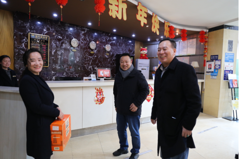 2024年1月31日下午,龙年春节即将到来之际,成都信息工程大学副校长舒红平带队,betway西汉姆联平台董事长兼总经理宫冠英、副总经理李浩麟、副总经理刘晓阳、党支部书记管廷岩、办公室主任刘小莉、物业部部长张迅等同志共同为新气象宾馆一线员工送去新春祝福和诚挚问候。